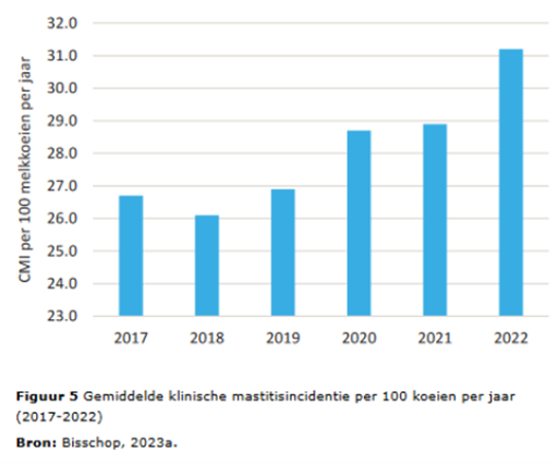 Abbildung 5: Mittlere Inzidenz klinischer Mastitis pro 100 Kühe und Jahr (2017–2022)